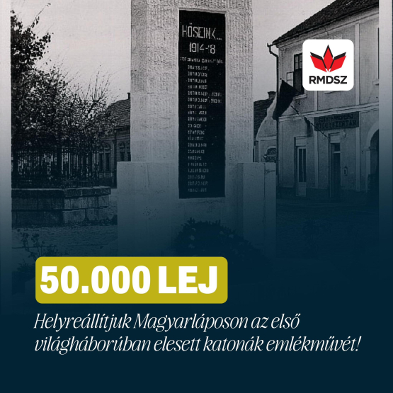 Nem feledkezünk meg azokról, akik életüket adták közösségünkért: az RMDSZ parlamenti munkájának köszönhetően megkezdődik a magyarláposi, az első világháborúban elesett katonák emlékművének helyreállítása -tájékoztatott Zahoránszki Brigitta, az RMDSZ máramarosi parlamenti képviselője. A kezdeményezés fontos lépés a történelmi emlékezet megőrzésében, és egyben tisztelgés azok előtt, akik áldozatukkal szolgálták közösségüket.