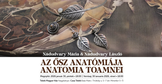 Az ősz anatómiája címmel nyílik rendhagyó kiállítás a jövő pénteken 18.00 órakor a Teleki Magyar Házban. Nádudvary Mária textilművész és Nádudvary László ötvösművész batiktechnikával készült leheletfinom selyemképeket, álomszép kárpitokat, ezüst, vörösréz és tűzzománc ékszereket állítanak ki a Ház termeiben és tárlóiban.