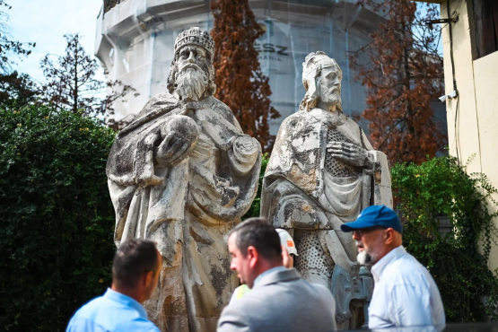 Teljes pompájukban láthatók ismét Szent István és Szent László király szobrai a felsőbányai Nagyboldogasszony-templom bejáratánál