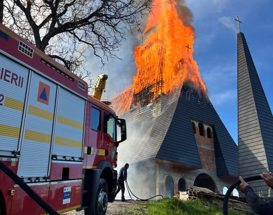 A katonai tűzoltók kedden délelőtt dióshalmi (Șurdești) görögkatolikus templománál keletkezett tűzhőz vonultak ki.