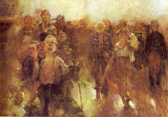 A bajor fõváros nagy multú akadémiája, mûvészeti egyesületei, kiállÃtó csarnokai, termékeny mûtermei jóidõre behatárolták Közép-Európa mûvészetének helyét és helyzetét. A történelmi- és zsánerfestészet központja, a technikai tökéletességre alapozó, de fantáziátlan akadémizmus erõdült itt fellegvárrá a múlt század második felében. Egyszólamúságában azonban sokáig volt megtartható ez a mûvészetpolitikát is kisajátÃtó konzervativizmus. München nem jelentette csupán Piloty, Kaulbach vagy Benczúr festészetét. SzÃntere ez a hely a rajtuk túllépõ Wilhelm Leibl, SzÃnyei Merse Pál, majd Hollósy és köre föllépésének. Ha fátyolosan megszûrve is, de idevilágoltak Párizs fényei. A barbizoni Corot, a realista Courbet, a késõnaturalista Bastien-Lepage hatása, majd az impresszionisták, s a német földön kibontakozó hÃvei ellenpontozták a változatlanságot hirdetõ akadémizmust. Ãgy született a nagybányai táborverés gondolata is: Münchenben, de a müncheni szellem ellenében! Hollósy kulcsalakja, valóban zászlóvivõje lett e mozgalomnak. A nagybányai kezdeményezés pedig a mûvészet egyre korszerûbb eredményeit közvetÃtette Közép- és Kelet-Európa felé. Ãttörõ lendületével tört át falakat, tömött be szakadékokat Nyugat és Kelet között. Az erdélyi magyarörmény Hollósy közel húsz éve élt Münchenben a nagybányai alapÃtás elõtt. Maga is tanÃtványa volt az akadémiának, mégpedig eminens növendéke. Mint számos magyar mûvésztársa, tanulmányai végeztével nem tért vissza hazájába, hanem az élénk mûkereskedelmi forgalmat lebonyolÃtó német nagyvárosban telepedett le. 1885-ben készült nevezetes festményének, a Tengerihántásnak sikere nyomán ismerõsei magániskola alapÃtására buzdÃtották. Vállalkozását példátlan siker koronázta. Iskolájának hÃre messze meghaladta a Münchenben mûködõ tucatnyi szabadiskoláét. Növendékeinek emlékezésibõl olvasható ki sikerének titka. Hollósy szuggesztÃv alkat volt, lenyûgözõ egyéniség. Senki nem tudta hatásosabban rávezetni tanÃtványait a festészet nagyszerûségére, a mûvészet lényegének átérzésére, mint õ. Ragaszkodott az oktatás akadémiai mintákat követõ kereteihez, de a növendékek a legtöbbet lelkesÃtõ magyarázataiból, a kötetlen beszélgetésekbõl, lényének delejes erejébõl nyertek. ,,TehetségesÃtõ erõvel" hatott rájuk, Ãrta tanÃtványa, Réti István, olyasformán, hogy a legtöbbet hozta ki belõlük, erejükon felüli képességeket, melyeket azután a tehetségtelenebbek soha többé fölmutatni nem tudtak. Mint a görög bölcselet mesterei, a növendékekkel töltött estéken, a szümpozion-szerû együttléteken fejtette ki gondolatait a mûvészetrõl, irodalomról, korszellemrõl. Mednyánszky mondotta róla nagyon ráillõen: bármilyen sokan vannak Hollósy társaságában, egyedül csak õ látszik. Vezérségre született egyénisége leginkább ebben a körben mutatkozott meg. Ãgy történt azután, hogy amikor egy milleniumi kép megfestésére hazahÃvták, tanÃtványait magával vitte Nagybányára. Ez a momentum a kolónialapÃtás történelmi plillanata! 1896. május 6-án érkezett Hollósy növendékeivel és mûvésztársaival Nagybányára, s hat éven át minden évben megismételték a közös munkálkodásban, kiállÃtásszervezésben eltelt táborozást. Iskolája itt is, mint Münchenben a nemzeti sokszÃnûség képét mutatta. Magyarokat, németeket, osztrákokat, lengyeleket, románokat oroszokat, svájciakat, de még gyarmati angolt is találunk a csak nehezen rekonstruált névsorokban. Mesterük, a bürokráciát nem ismerõ Hollósy sohasem vezetett följegyzést a növendékekrõl. Hollósy elválása Nagybányától, távozásának oka a kutatás és visszaemlékezések sokat bogozgatott kérdése. Fájdalmas döntésének mûvészetpolitikai és személyes okai voltak. Ellentéte egykori alapÃtó társaival a pesti mûcsarnokbeli kiállÃtások során érlelõdött. Hollósy még a modernebb felfogású, de Nagybányán kÃvüli kortársakkal is elutasÃtotta az egyezkedést. AlapÃtása önállóságát féltette tõlük, vezéri szerepét látta veszélybe sodródni. A személyes okok a kicsinyes kisvárosi konfliktusokban s Hollósy beilleszkedni képtelen magatartásában találhatók föl. Nagybányáról távozva Vajdahunyadra, a Balaton partjára, Máramarosszigetre, Gyaluba, s több éven át a Tisza-parti Técsõre vitte le növendékeit. Ezt a vándorló iskolarendet a nagybányai tapasztalatok nyomán végig megõrizte. Nagybányáról azonban, a kolónia késõbbi sorsáról többé nem akart tudni; fájó megbántottságát az idõ nem oldotta föl. Hollósy festészetét a mûvészettörténeti elemzés élete változásaival összhangban oszthatja elhatárolható korszakokra. München a népies zsáner periodusa. Bár témában sok újat nem hozott, alkotásai mégis frissebbek, életesebbek a pályatársak anekdotikus jeleneteinél. A német és francia naturalista festészet hatása mutathaó ki bennük. Amióta Petrovics Elek a budapesti Szépmûvészeti Múzeum számára megszerezte a Tengerihántást, a kutatók mintegy tárgyi bizonyÃték alapján mérhették le a festmény varázsának mibenlétét müncheni körére, növendékeire. Ebben az érzelemdús, finoman és gondosan megfestett mûben mutathatták ki alkotójának a pályatársak elõtt is tudatosult nem mindennapi tehetségét, a francia Bastien-Lepage-zsal rokon szellemi igazodását. A nagybányai leköltözés után illusztrációs mûvek, tájak és alakos kompozÃciók, a Rákóczi-induló változatai foglalkoztatták. Jellemzõ, hogy a millenáris rendelésre készült mûben, A huszti várban is tájképet alkotott. Ez a nagyméretû festmény, mely plain air festészetének a kezdeteket fölmutató alapmunk