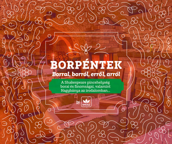 A harmadik borpénteken a Shakespeare pincehelység borait szolgálják fel egyéb finomságok mellett. A Teleki Magyar Ház által kiadott Nagybánya az irodalomban című kötetből felolvas Balogh Csaba, valamint beszélget Dávid Lajossal.